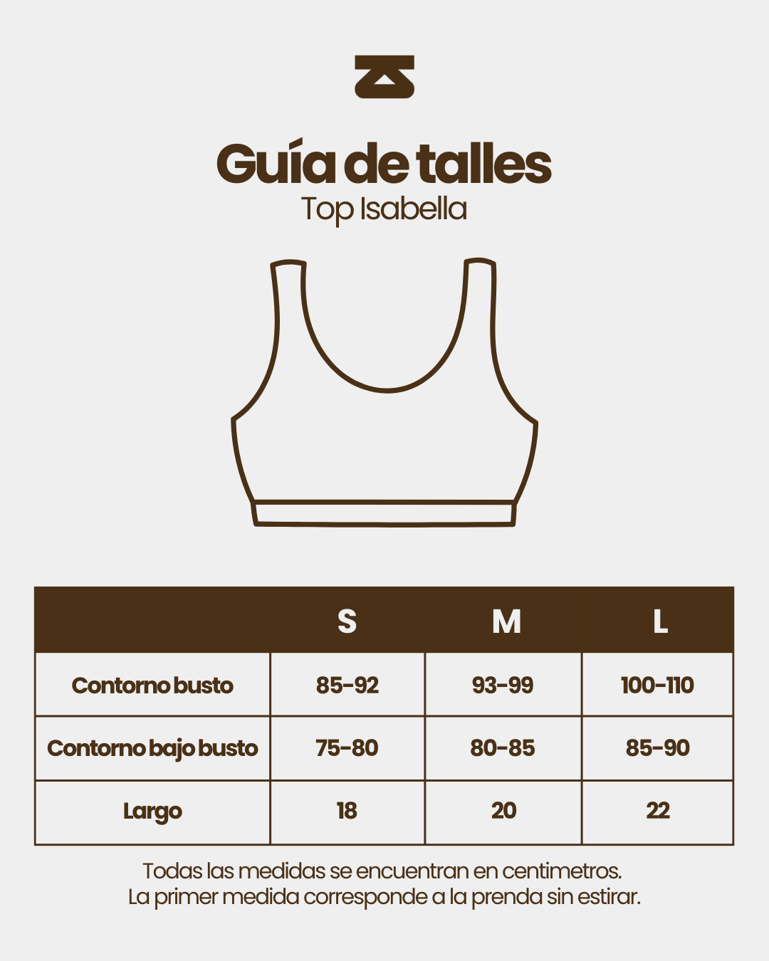 La modelo de top chocolate esta usando talle L